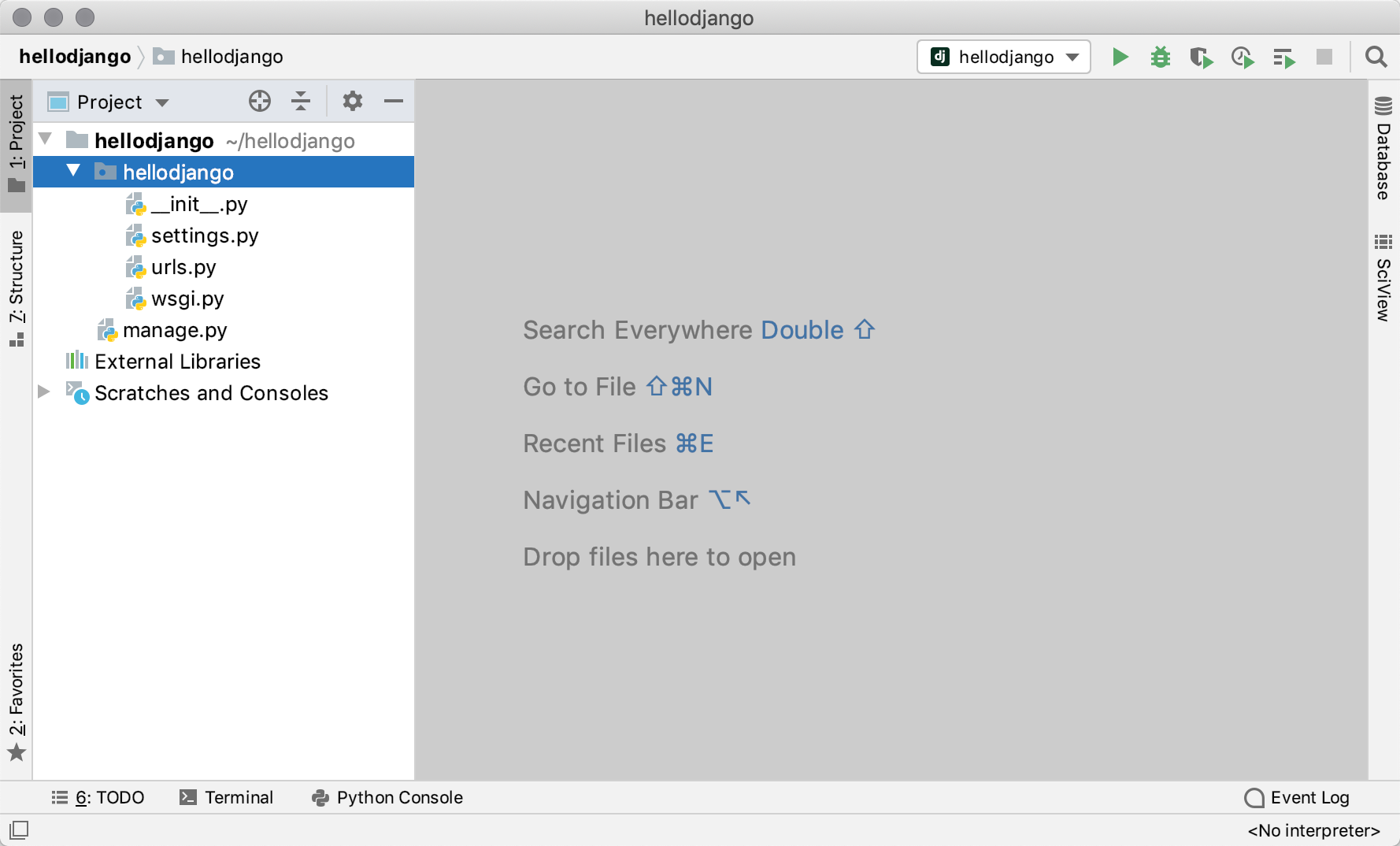 django-admin命令創建Django項目(項目名稱為hellodjango)。django-admin --version django-admin startproject hellodjango -