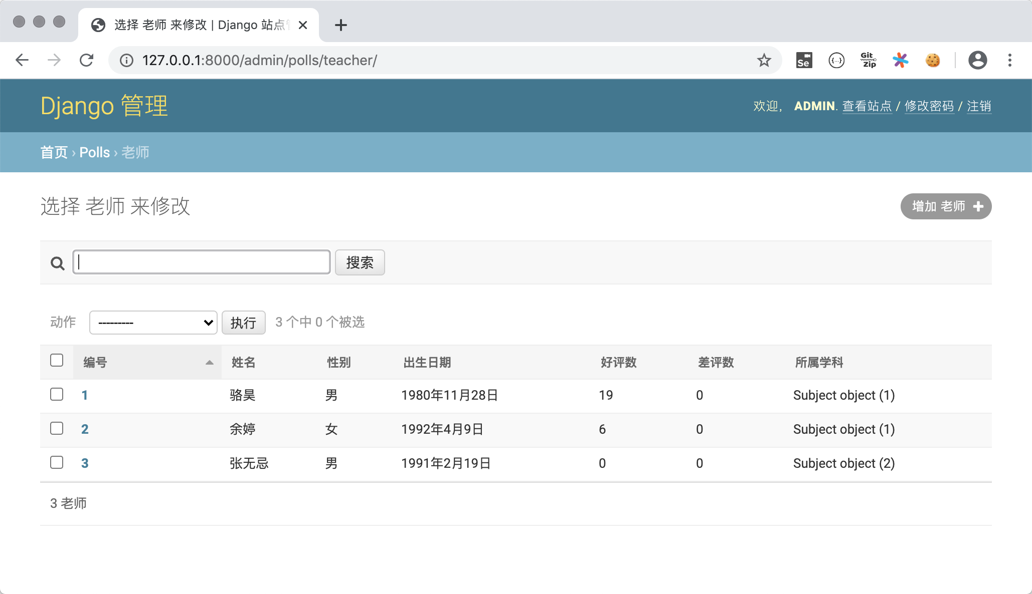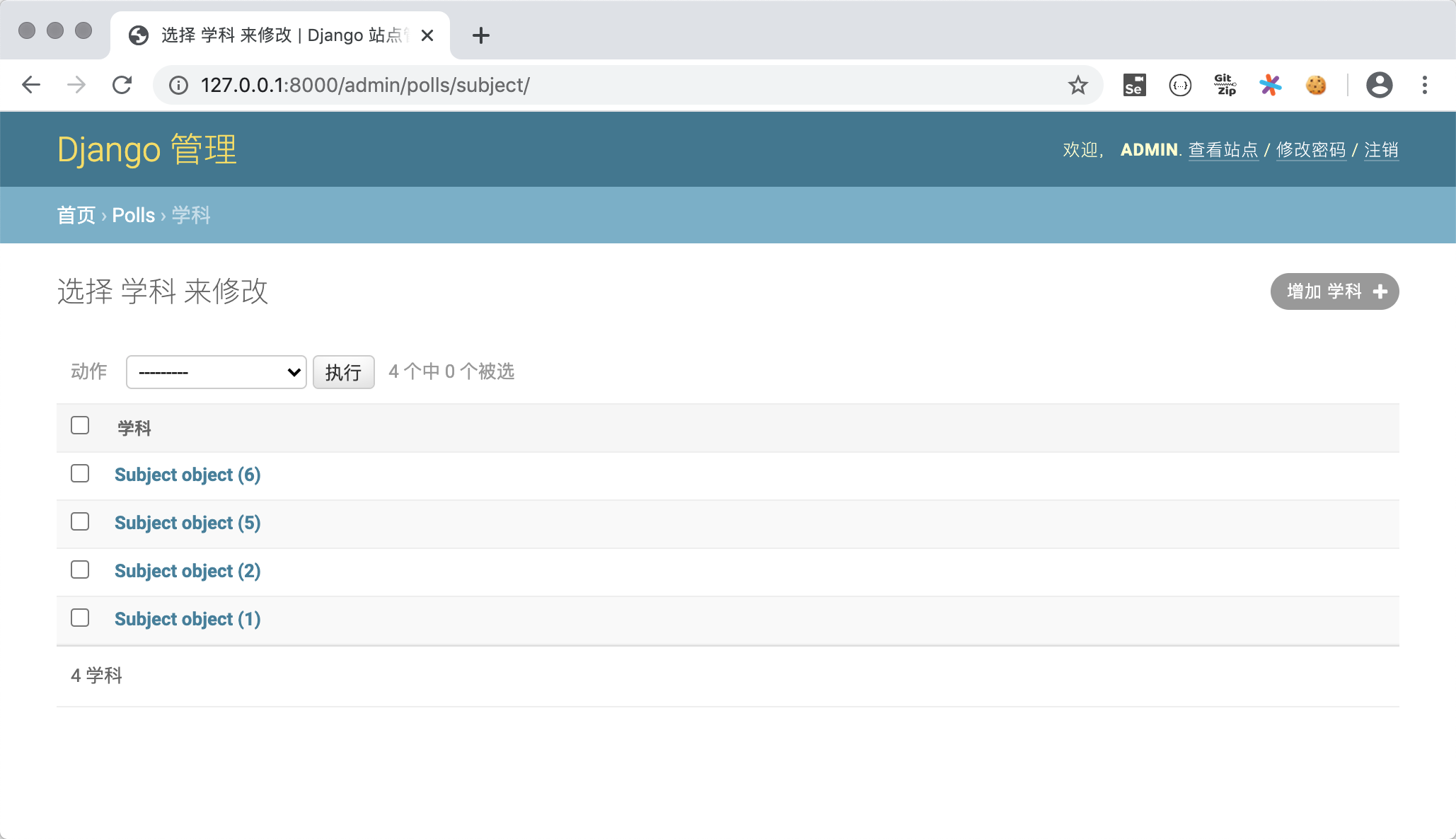 admin應用中看到之前創建的模型類,為此需要在polls應用的admin.py文件中對需要管理的模型進行注冊。 -
